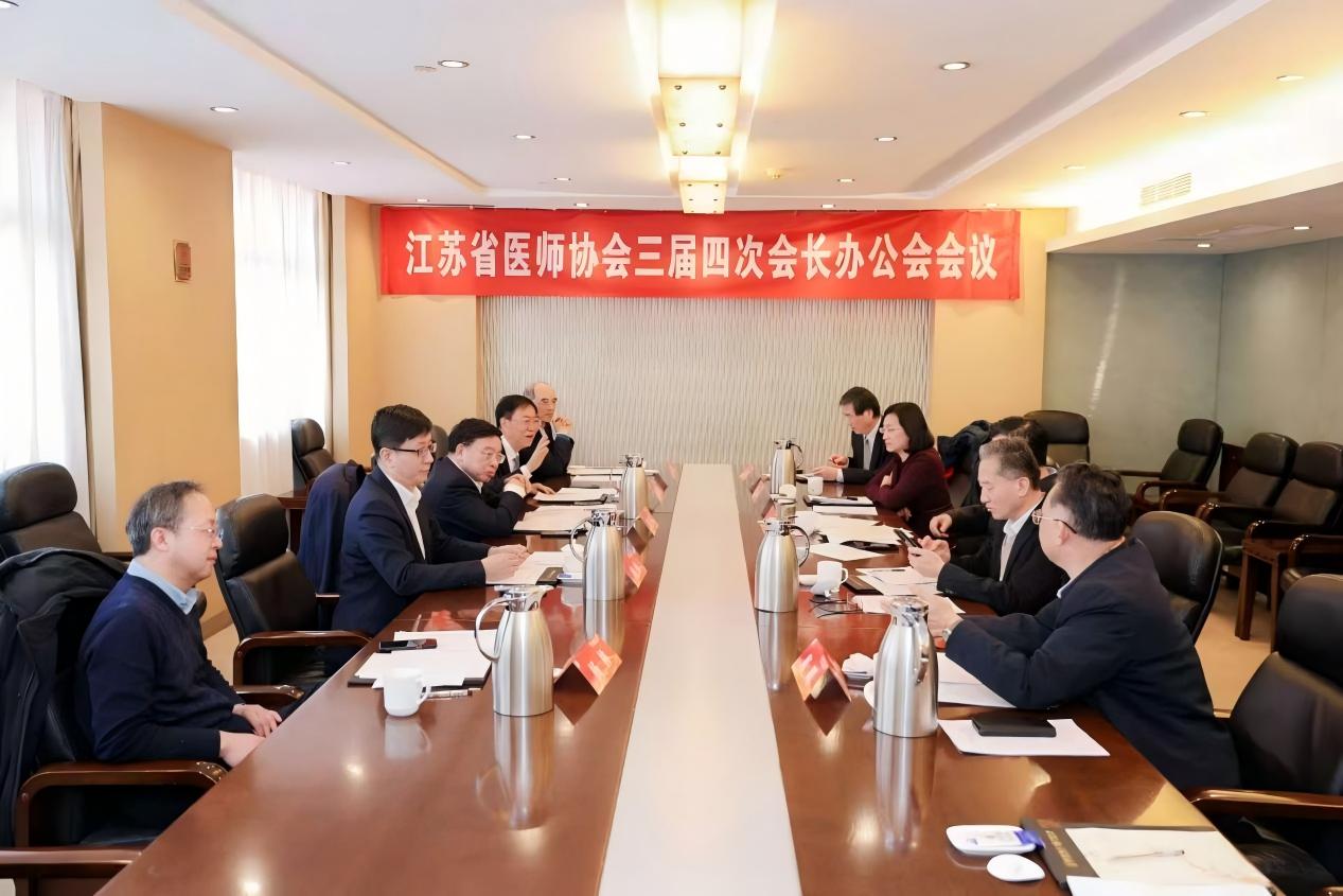 2026年1月17日上午,江苏省医师协会在南京召开三届四次会长办公会会议,会长、副会长、监事会主席参加会议。会长陈卫昌主持会议,会议审议并通过了三届十二次理事会会议议程;讨论并通过了省医师协会2025年工作总结和2026年工作计划;审议并通过了2026年年会及培训等活动计划;审议并通过了拟新成立二级机构的申请;通报了2025年财务收支情况;讨论并通过了辞任理事的申请等其他议题。与会者就议题畅所欲言,热烈讨论,并形成共识,大家表示医师协会作为医师行业的组织,要突出行业内涵,积极举办各类具有医师行业特点的活动,充分发挥协会的重要作用,维护医师合法权益,进一步提升医师队伍建设管理的能力和水平。